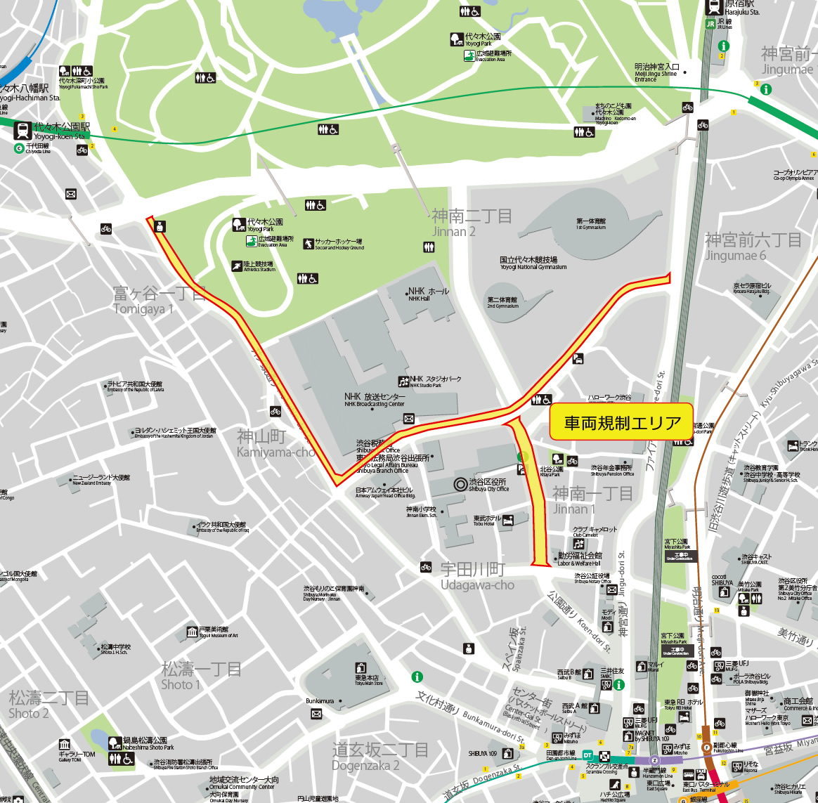 代々⽊公園周辺の交通規制を⾏います。